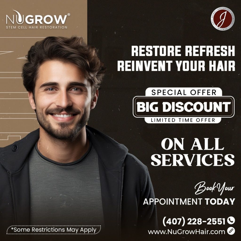 NuGrow is the best Clinic for stem cell hair restoration in Orlando, FL. Our aim is to help individuals avoid hair loss with advanced and most effective treatments. NuGrow located at 7300 Sandlake Commons Blvd, Ste 227 D, Orlando, FL.